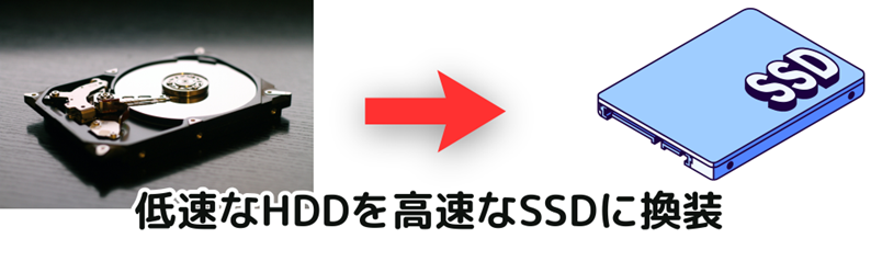 パソコンに内蔵されている記憶装置のHDD(ハードディスク)を高速で故障の少ないSSD(ソリッドステートドライブ=半導体チップ方式の記憶装置)に交換して皆様のパソコンを蘇らせます!